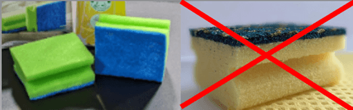 NOTE: Strongly abrasive sponges, for example, yellow-green or yellow-black sponges, are NOT suitable!