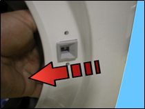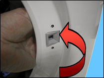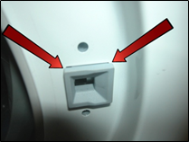 Before tightening the screws to secure the door safety device to the front panel, make sure the flange is positioned properly on the outside as indicated by the arrows.